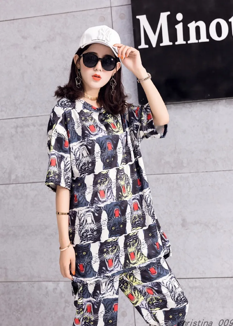 QING MO Женский комплект 2019 Vogue Женский комплект с принтом кота и животных Женские шорты