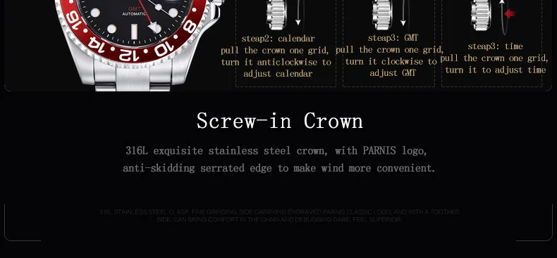 Характеристики Товара: 1. Материал зеркала: сапфировое стекло 2. Корона и Материал корпуса: нержавеющая сталь 316L Чехол Из Нержавеющей Стали crown и 316L 4. Движение: Движение Mingzhou 3804 5. Материал ремешка: нержавеющая сталь, резиновый ремешок