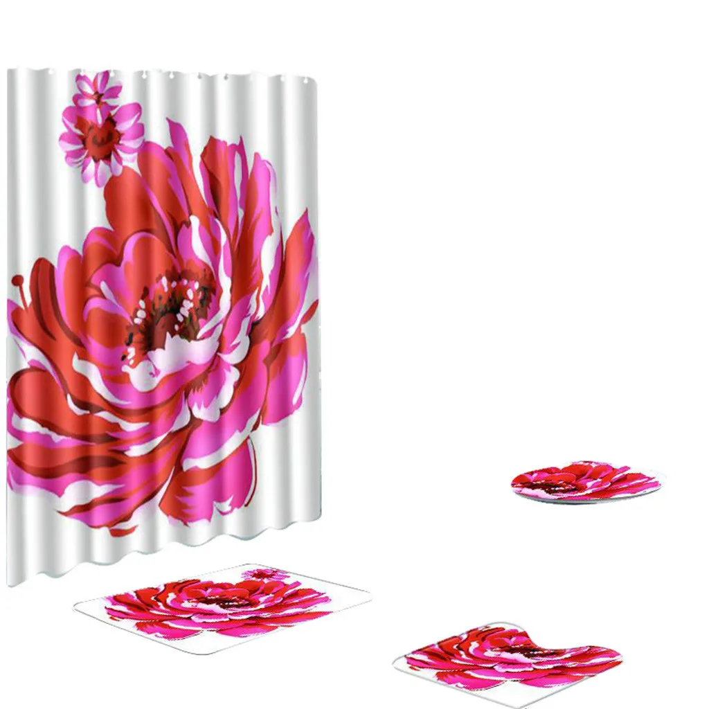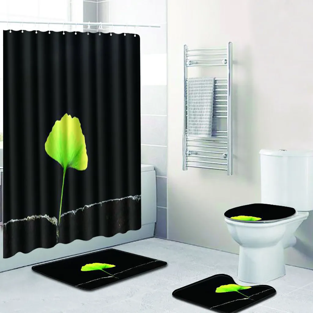 4 шт. Нескользящие унитаз полиэстер покрытие коврик набор ванная комната занавеска для душа