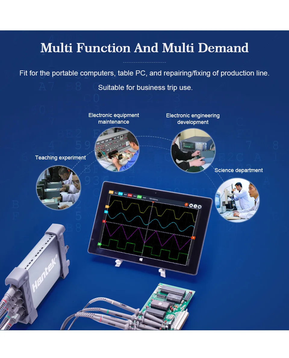 Цифровой осциллографHantek 6254BE250 МГц полоса пропускания автомобильные осциллографы автомобильный детектор 4 канала 1Gsa/s USB PC Osciloscopio