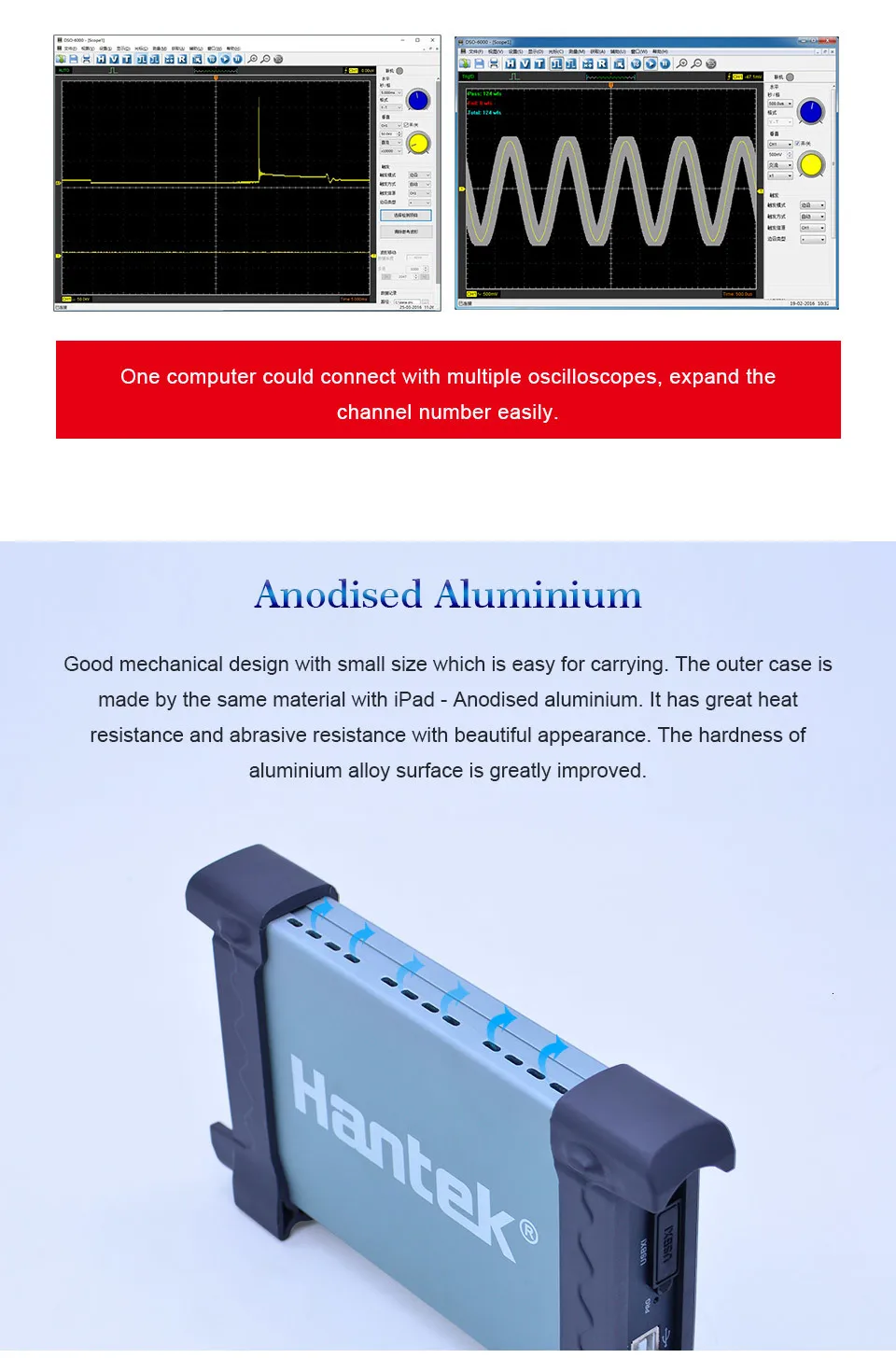 Один компьютер может подключаться к нескольким осциллографам, легко увеличить номер канала.