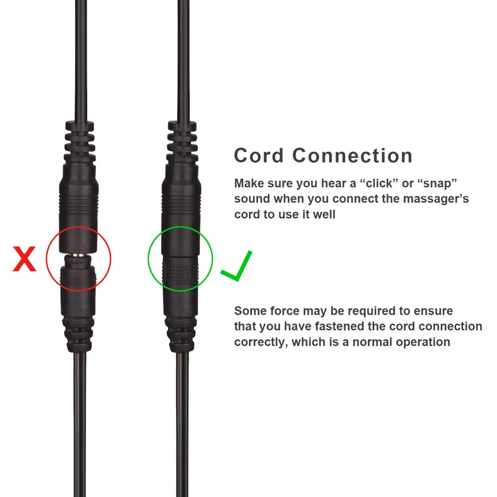 Подключите выходной порт адаптера питания к штепсельной вилке массажера. При использовании в автомобиле Подключите выходной порт прикуривателя к вилке массажера.