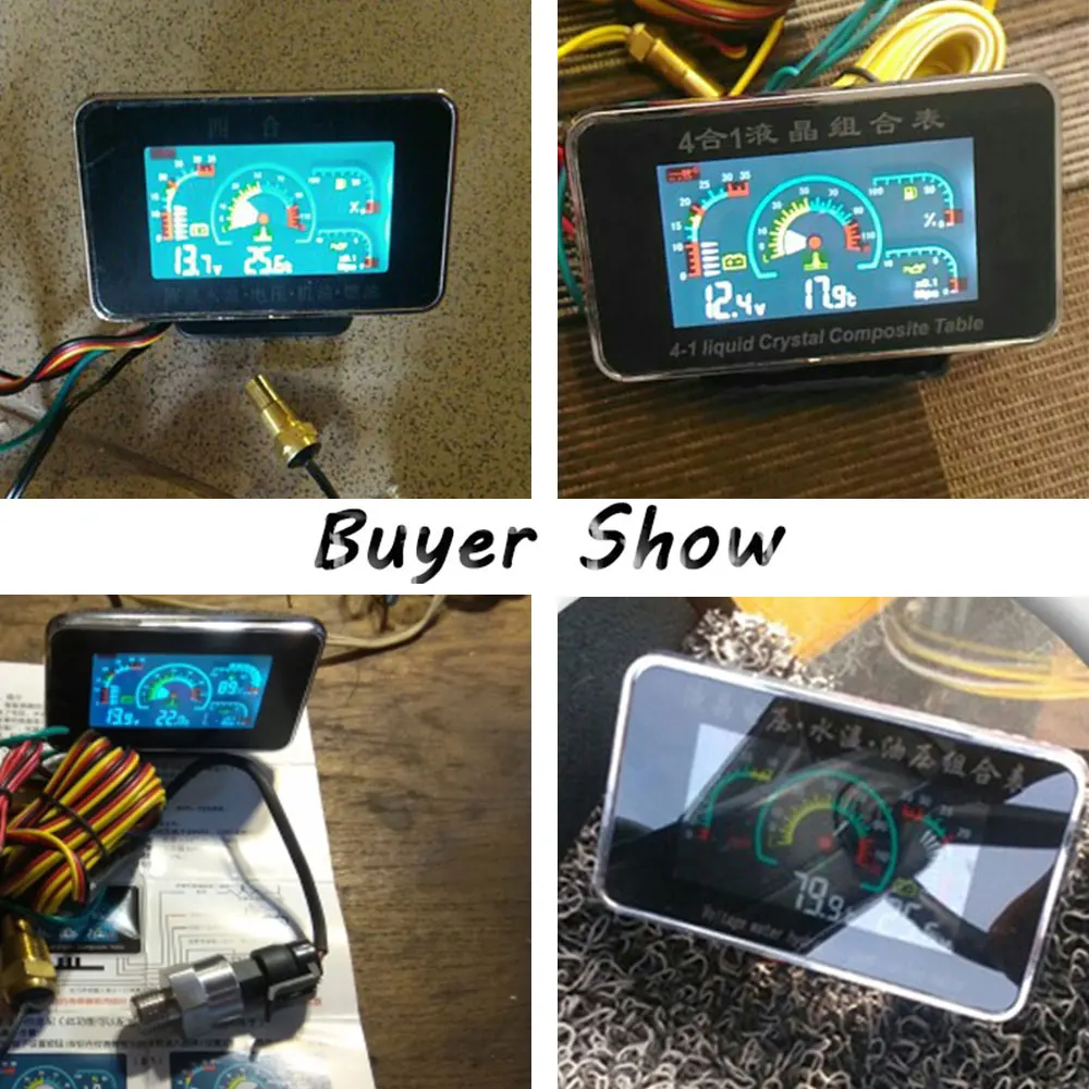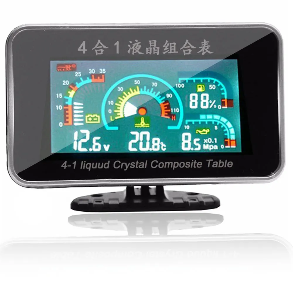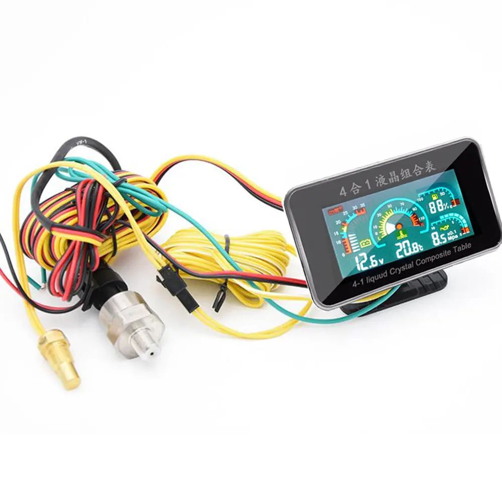 -Название: Автомобильный ЖК-дисплей 4 в 1 Манометр (температура воды/давление масла/топлива/датчики напряжения)