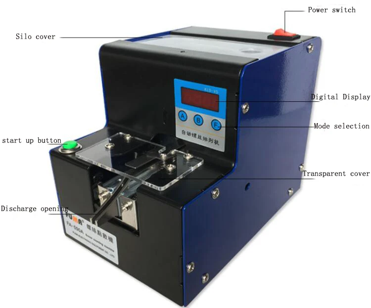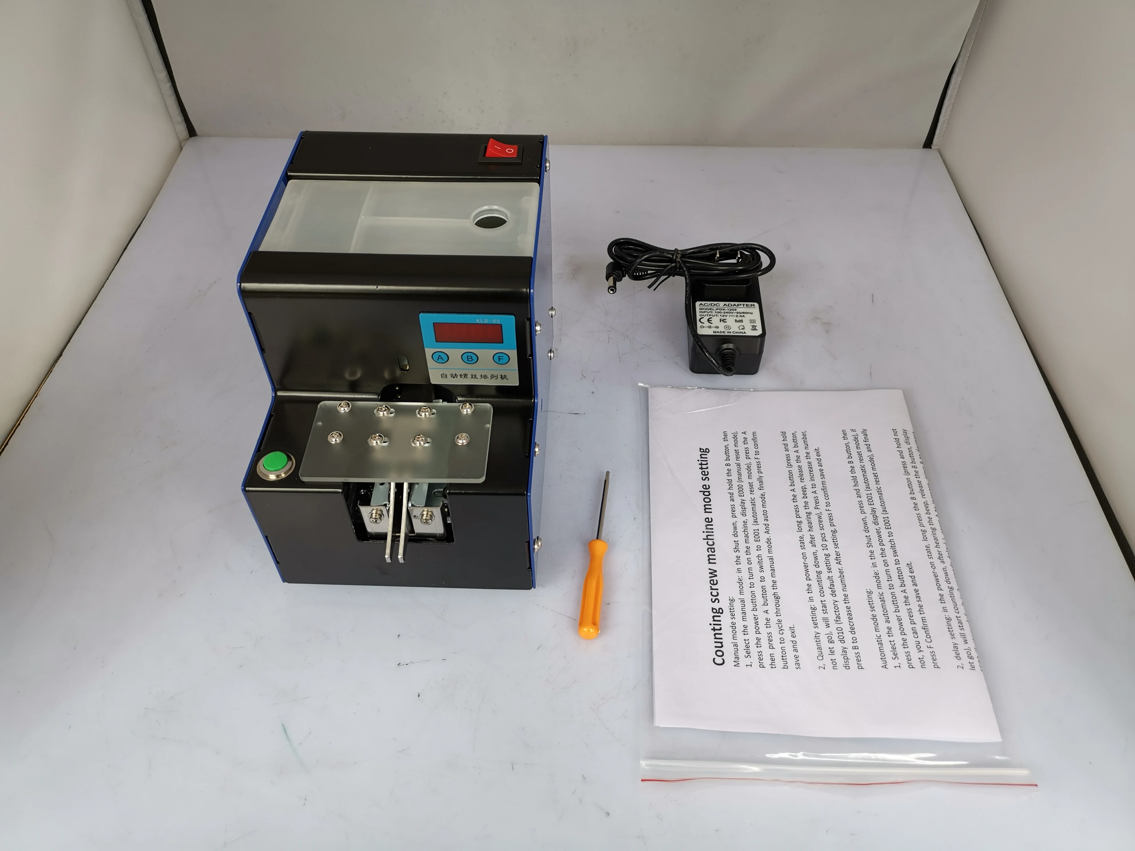 Устройство, которое поставляет определенное количество винтов или других частей одним касанием. Машина предназначена для небольших упаковочных работ или для деталей с заданным количеством винтов одним щелчком. Характеристики винтовой машины: 1. Количество 0-9999 можно установить произвольно 2. С высокой точностью счетчика 3. Широкий спектр применения, регулируемый трек 1,0-5,0 мм Размер 4. Простой и легкий, может работать на столе 5. Удобно и быстро, скорость разряда составляет около 90 шт/мин Номинальные параметры: Размеры: 125Wx180Hx150D Вес нетто: около 3,3 кг Источник питания: DC12V/2A Длина винта: менее 20 мм Ширина дорожки: M1-M5 Головка винта: подходит для всех видов винтов с гайками