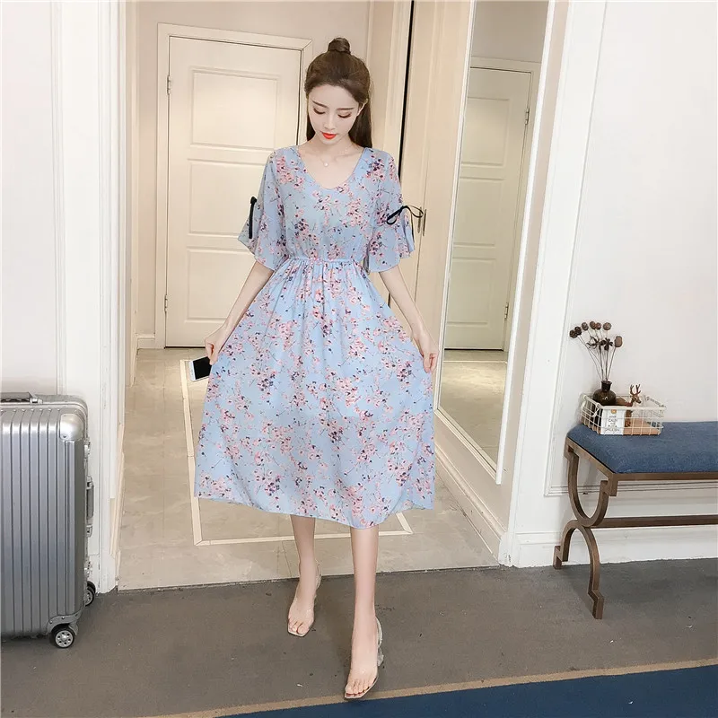 LYJMTDBK женское шифоновое платье, летнее модное женское элегантное платье, рукав-труба с цветочным принтом, короткий рукав, длинное богемное платье S-3XL