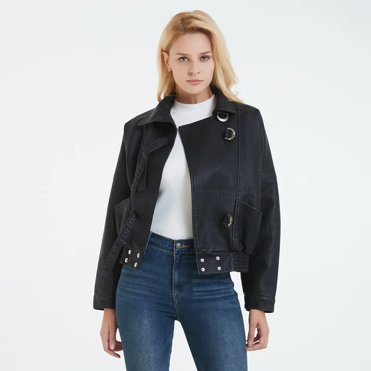 Женский пиджак из натуральной кожи тонкий овчины с эластичной талией и длинным