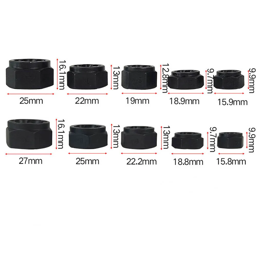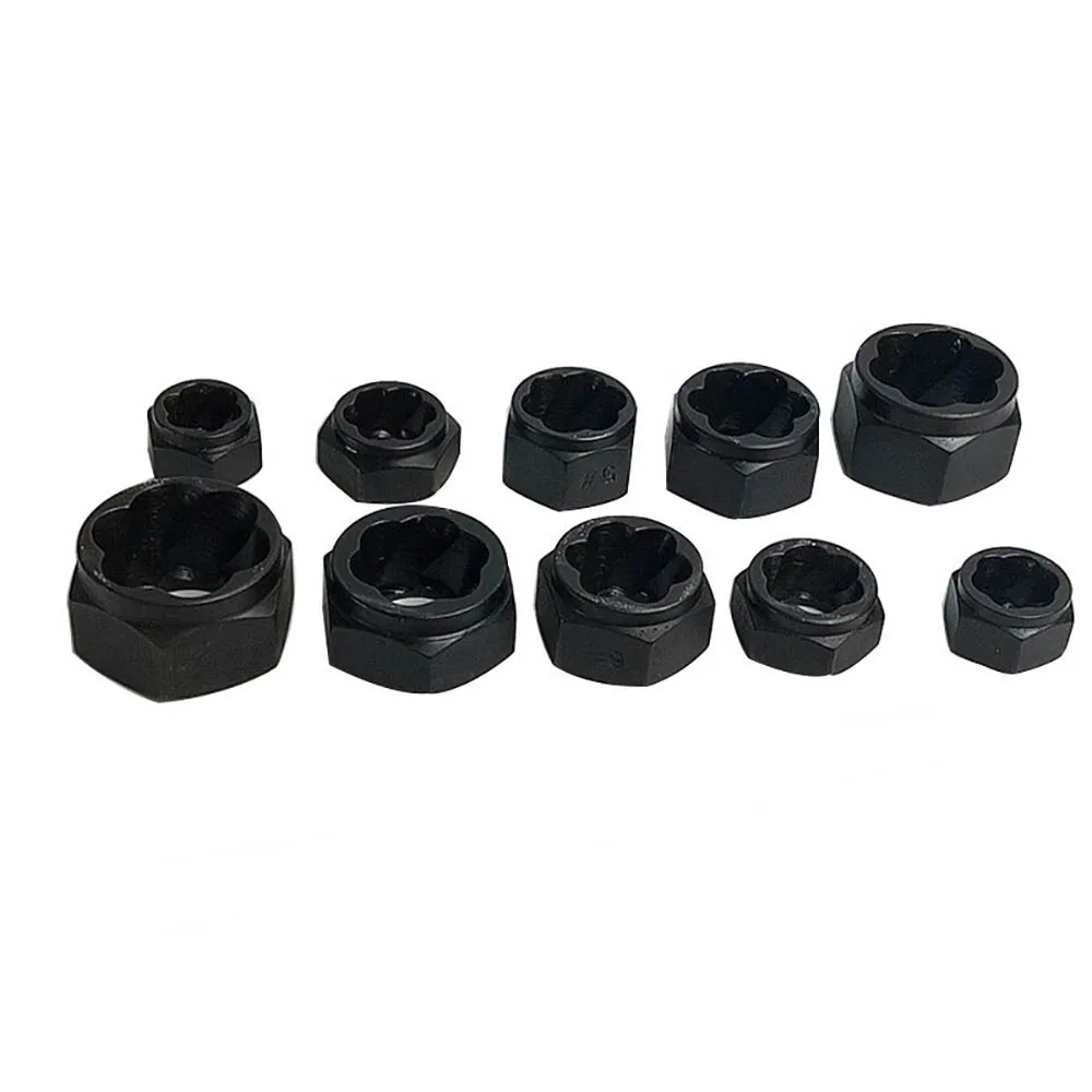 Особенности: Это набор из 10 прочных инструментов, помогающих удалить гайки, болты, головки винтов, шпильки и т. д. Подходит для головок размером 9, 10, 11, 12, 13, 14, 15, 16, 17 и 19 мм. Зубцы спиральной резки обеспечивают положительный захват для удаления закругленных или поврежденных болтов. Изготовлены из твердого сплава, обладают высокой прочностью и долговечностью. Эти инструменты можно управлять метрическим гаечным ключом или розеткой для быстрой работы. Все эти инструменты упакованы в чехол для удобного хранения и транспортировки.