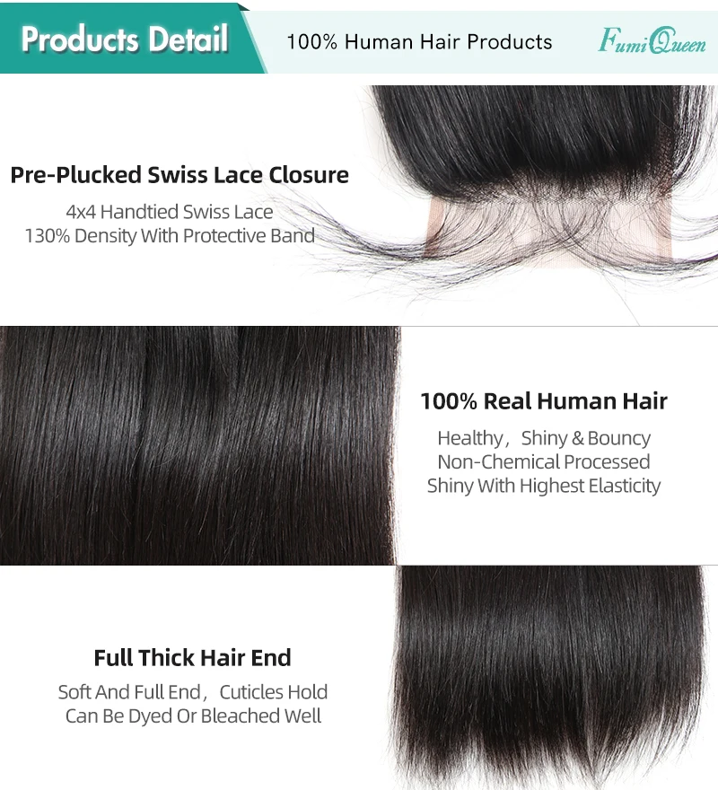 Название изделия: прямое кружевное закрытие 4x4 Название бренда: Али Queen Hair Co., Ltd Цвет волос: натуральный черный, может быть окрашен и отбелен. Обрезка волос: свободная часть Длина волос: 10 "~ 20" Материал щетины: человеческие волосы высокого качества Срок поставки: около 2-5 дней по DHL/FEDEX Характеристика: здоровая, насыщенная и насыщенная текстура