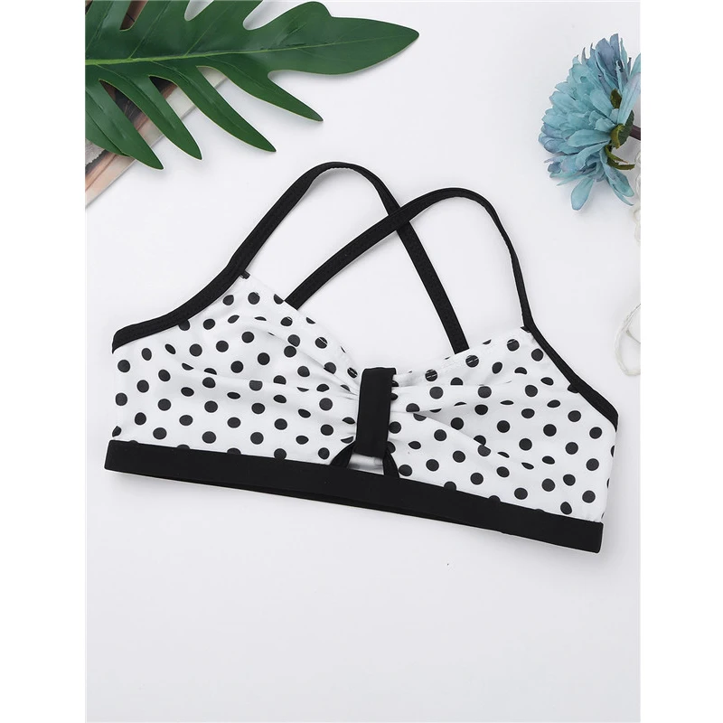 Детский спортивный костюм для девочек, укороченный топ в горошек на тонких бретельках и шорты, комплект для балета, занятий в тренажерном зале
