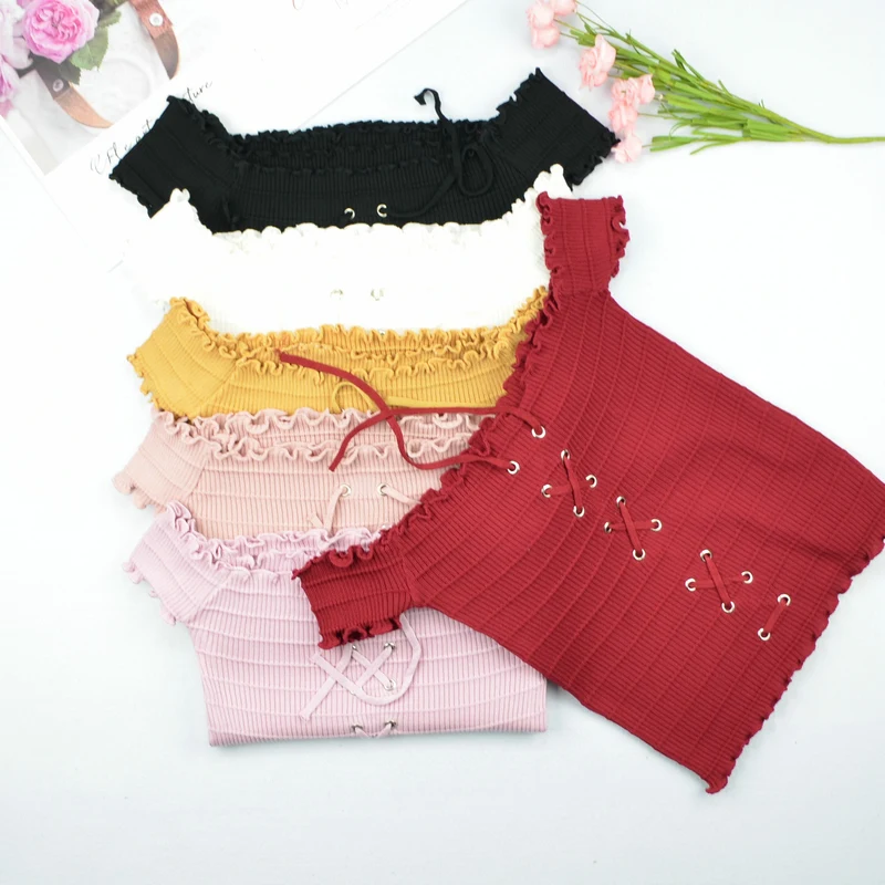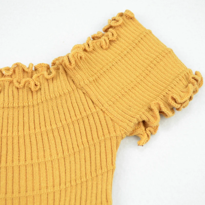 Женский ТРИКОТАЖНЫЙ УКОРОЧЕННЫЙ ТОП Fantoye с рюшами и завязками по бокам круглым