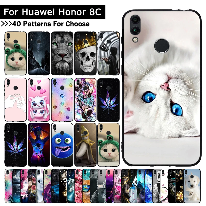 Силиконовый чехол из ТПУ для Huawei Honor 8C мягкий с изображением кота животных цветов