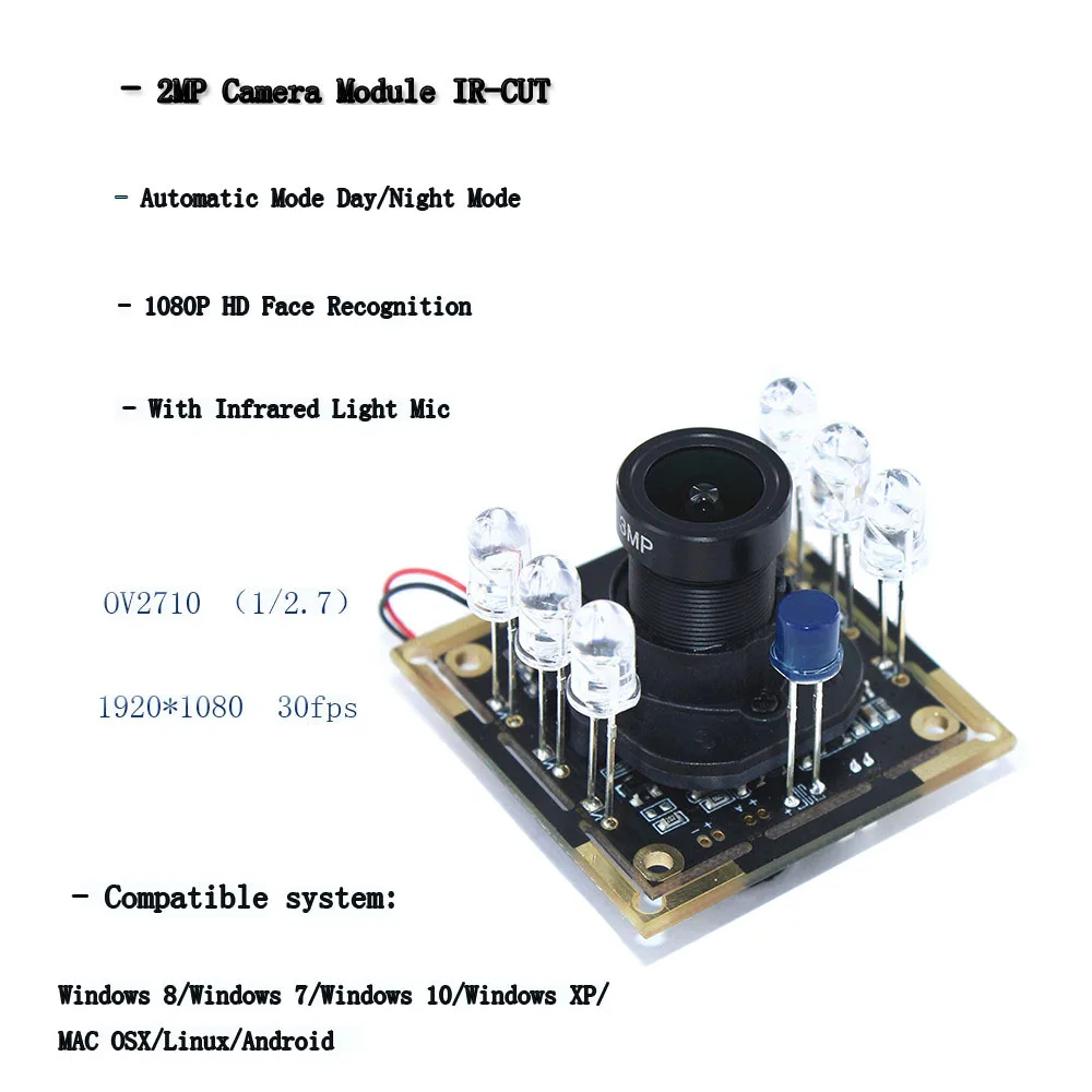 2MP модуль камеры IR-CUT автоматический режим день/ночь инфракрасный светильник 1080P HD распознавание лица