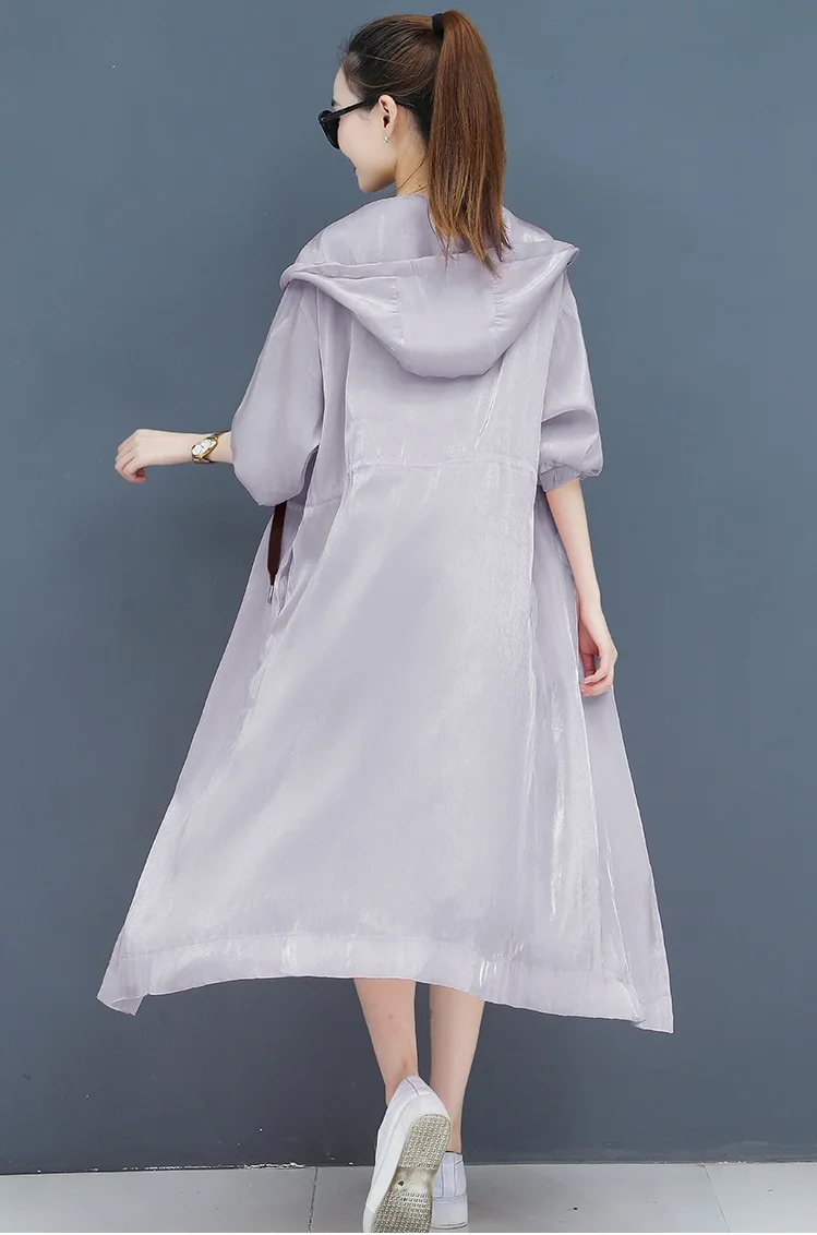 Женская длинная куртка с капюшоном UHYTGF, тонкая дышащая куртка оверсайз с защитой от ультрафиолета, длинная свободная куртка 10