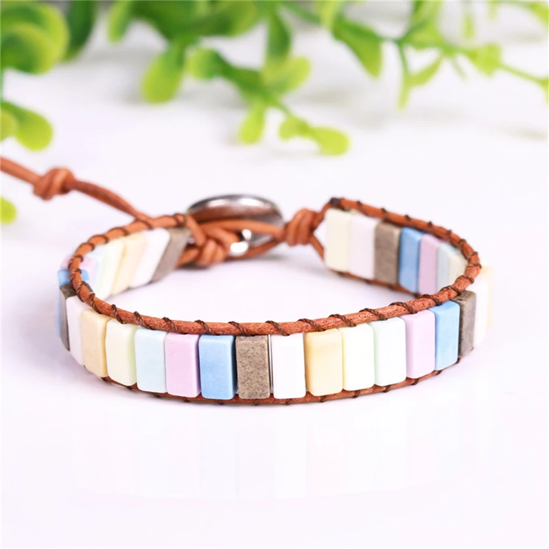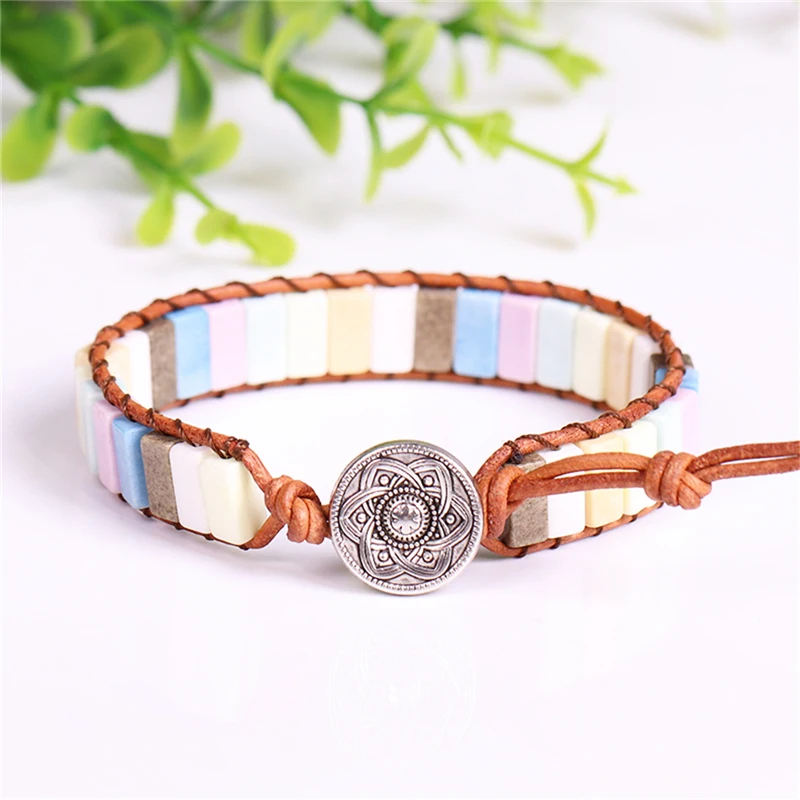 Кожаный браслет из натуральных камней, очаровательные браслеты ручной работы в стиле бохо, браслет для женщин, Прямая поставка