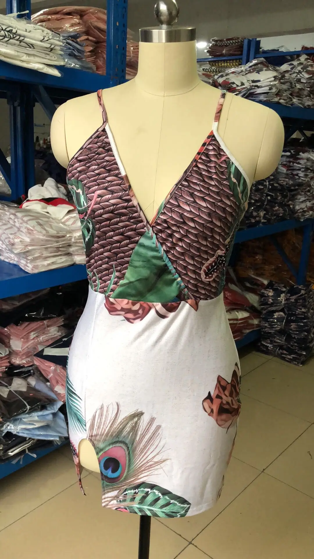 Женское облегающее платье с принтом павлина и перьев, элегантное вечернее платье с v-образным вырезом, лето 2019