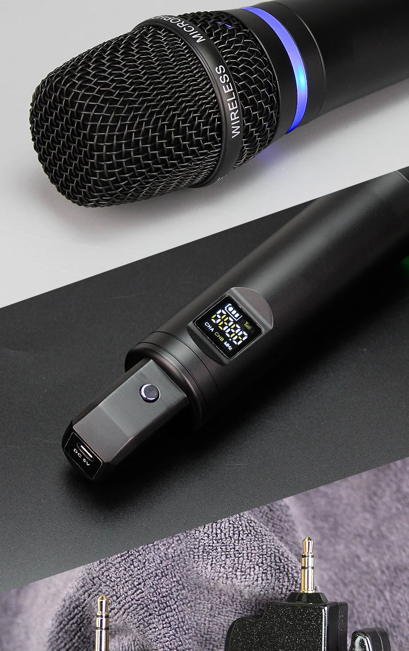 2 Handheld ручной микрофон, 1 Receiver приемник, 1 ✘ USB кабель для зарядки, 1 converter 6,5 мм до 3,5 мм конвертер, 1 ✘ Руководство пользователя