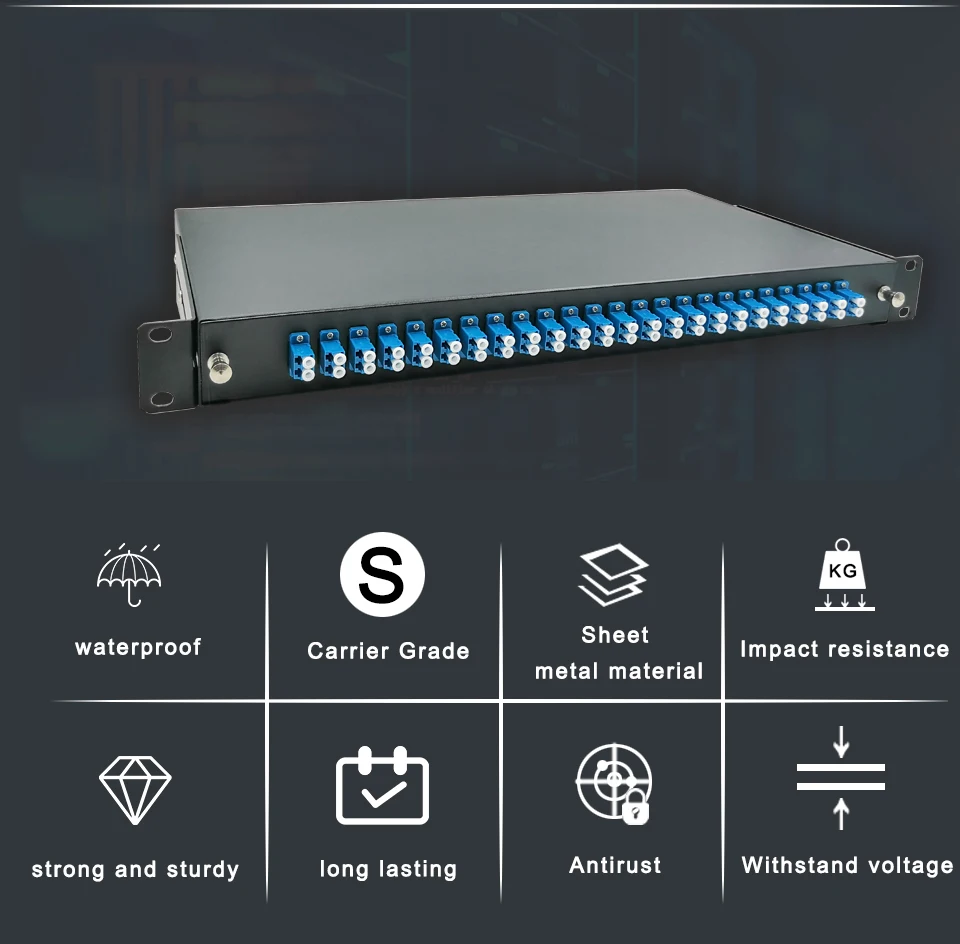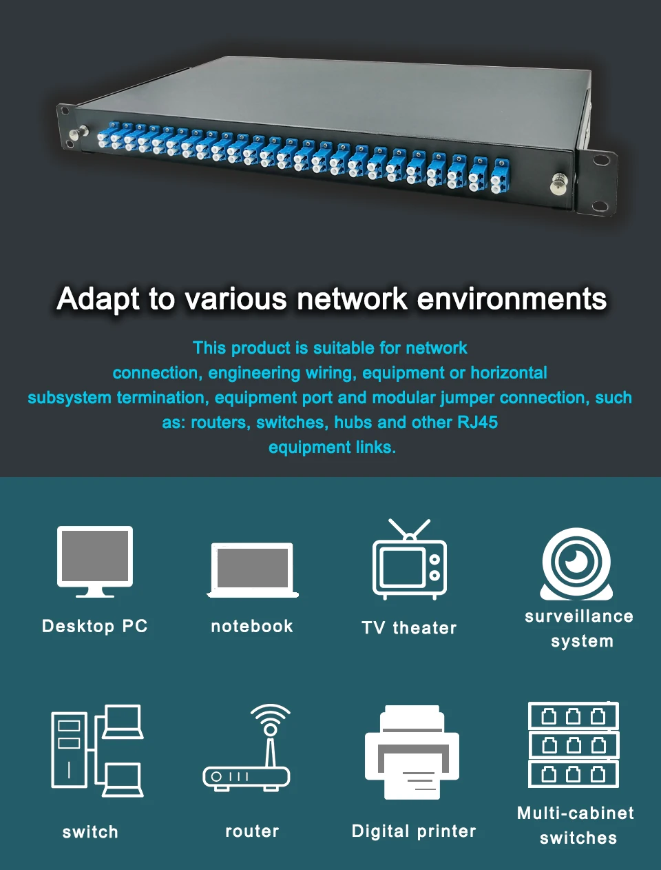 1. Стандартный размер, светильник вес и разумная структура 2. Лоток для сращивания внутри 3. Для 19-дюймового стандартного размера, поэтому, светильник по весу и прочная конструкция 4. Подходит для ленты и одного волокна 5. Различные панели для различных адаптеров 6. Передняя отметка на пластине проста в идентификации и эксплуатации 7. 24C, 36C, 48C, 96C,144C опционально, с или без волоконно-оптических косичек и адаптеров 8. Простота в управлении и эксплуатации