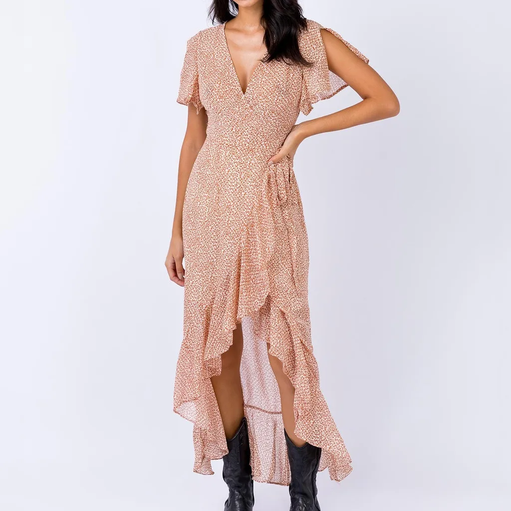 Женское летнее платье с V-образным вырезом и рукавами-фонариками