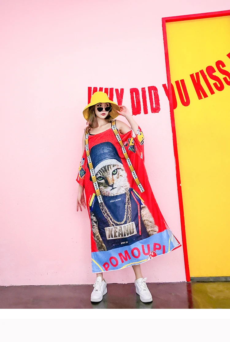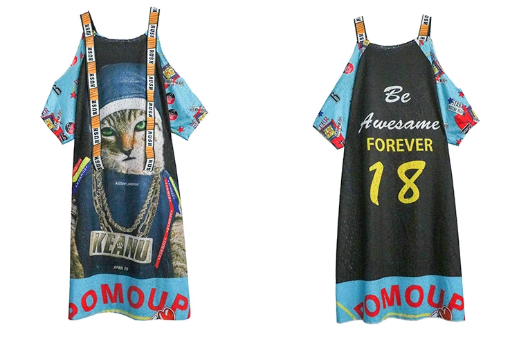 Женское платье с открытыми плечами Vefadisa, летнее платье с принтом кота и животных