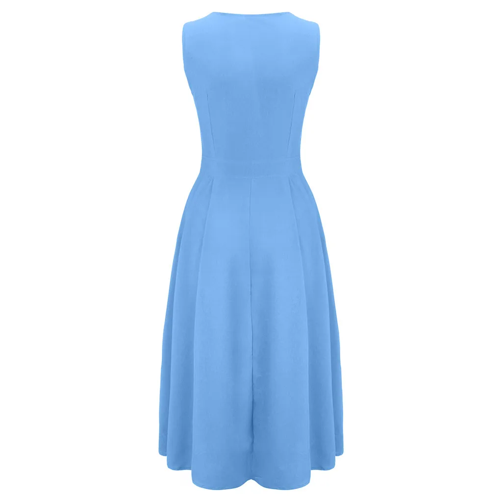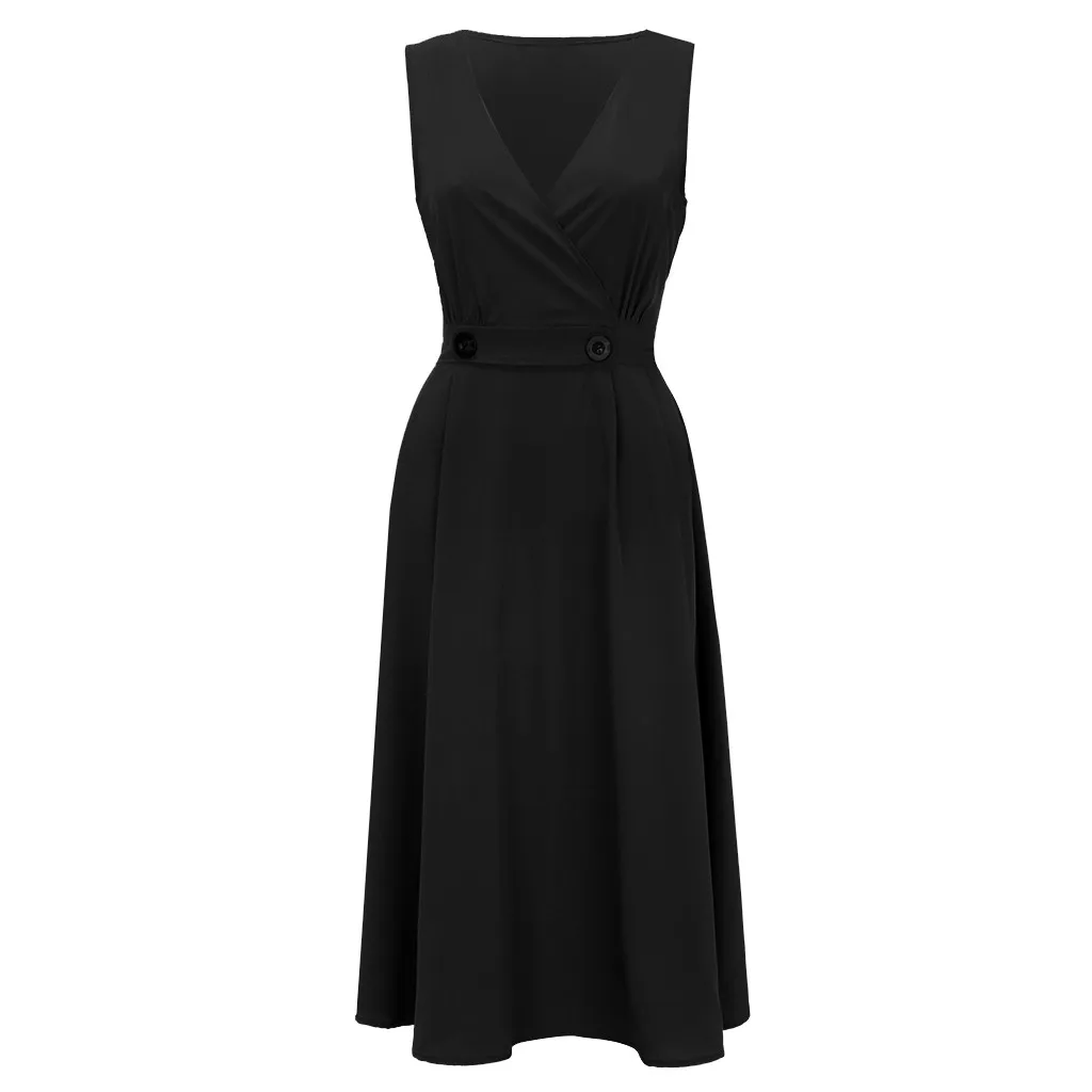 Модное женское однотонное пляжное платье без рукавов с v-образным вырезом и пуговицами
