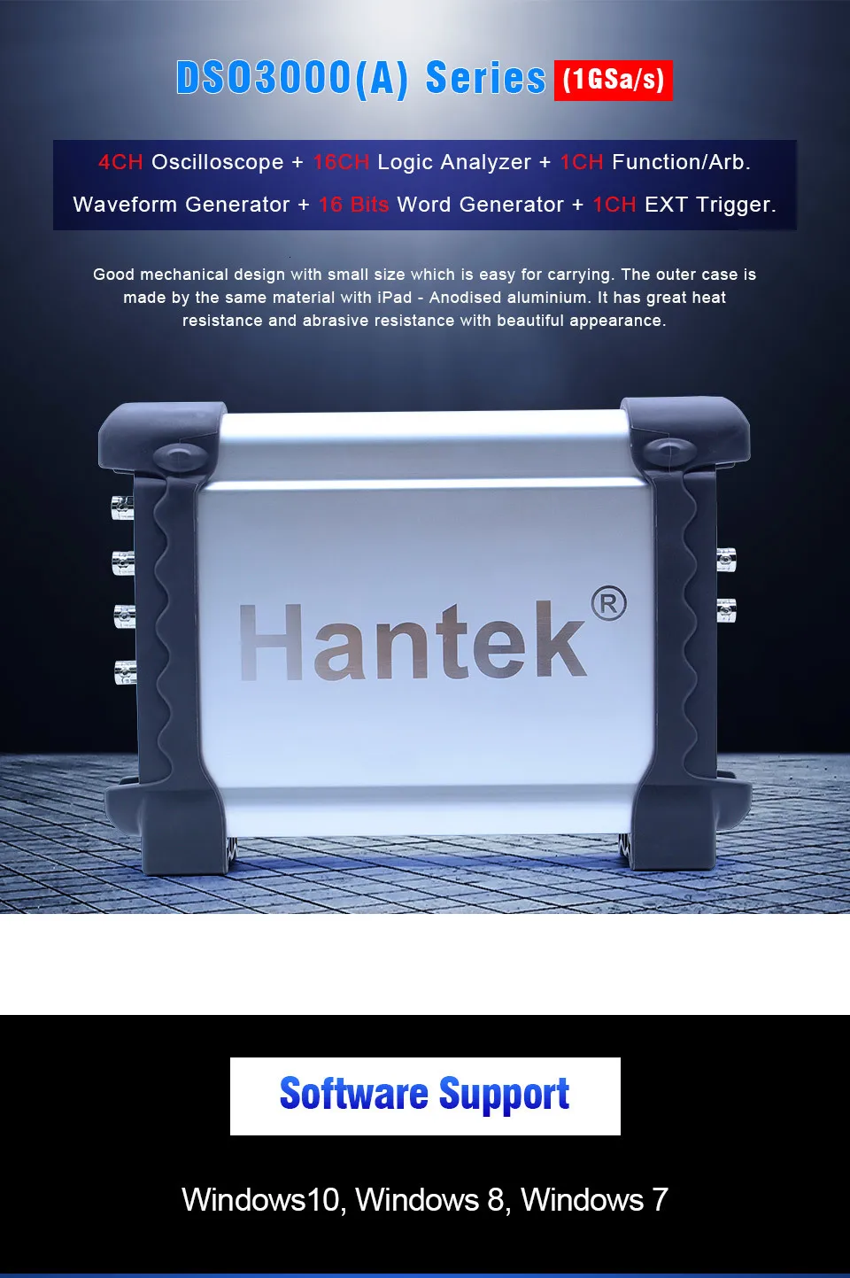 Hantek DSO3000A USB осциллографы 4CH 100-250 МГц 1GSa/s PC генератор сигналов для хранения 16 каналов логический анализатор тестер формы волны