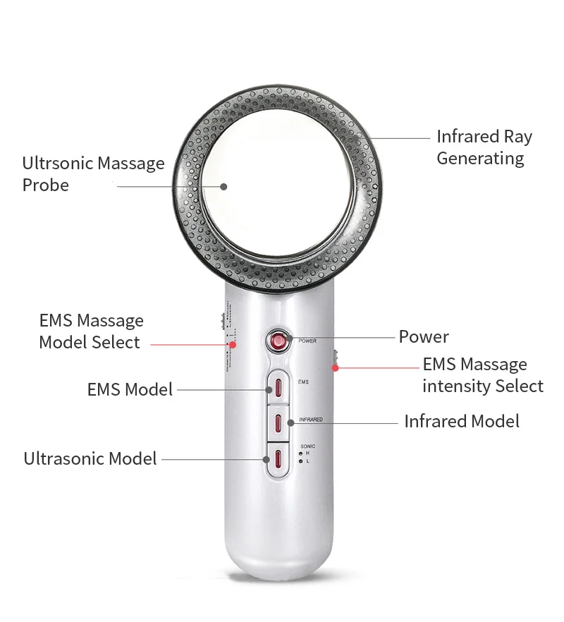 Ультразвуковой массажный зонд Инфракрасных лучей генерации EMS модель массажа EMS модель Кнопка включения EMS интенсивность массажа Инфракрасный Модель Ультразвуковые модели