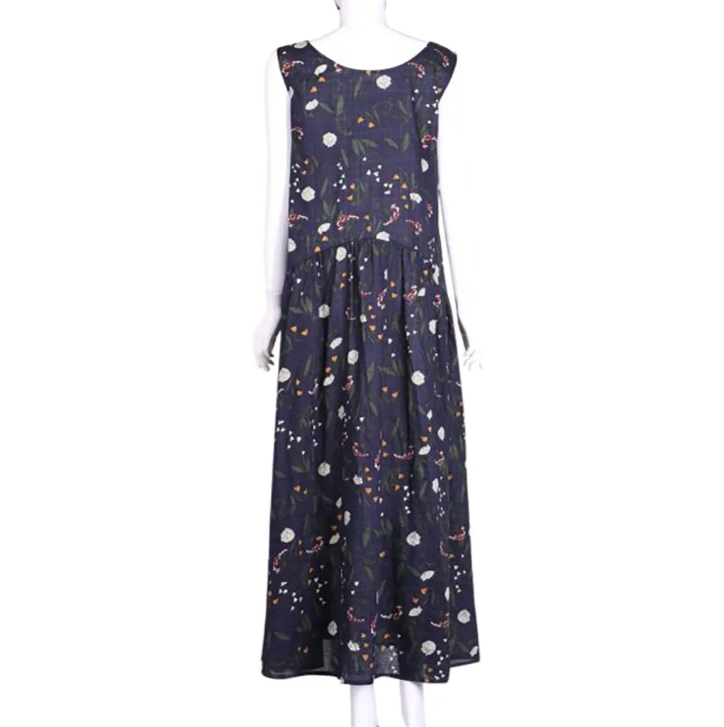 Женское винтажное длинное платье макси без рукавов с круглым вырезом и цветочным принтом больших размеров