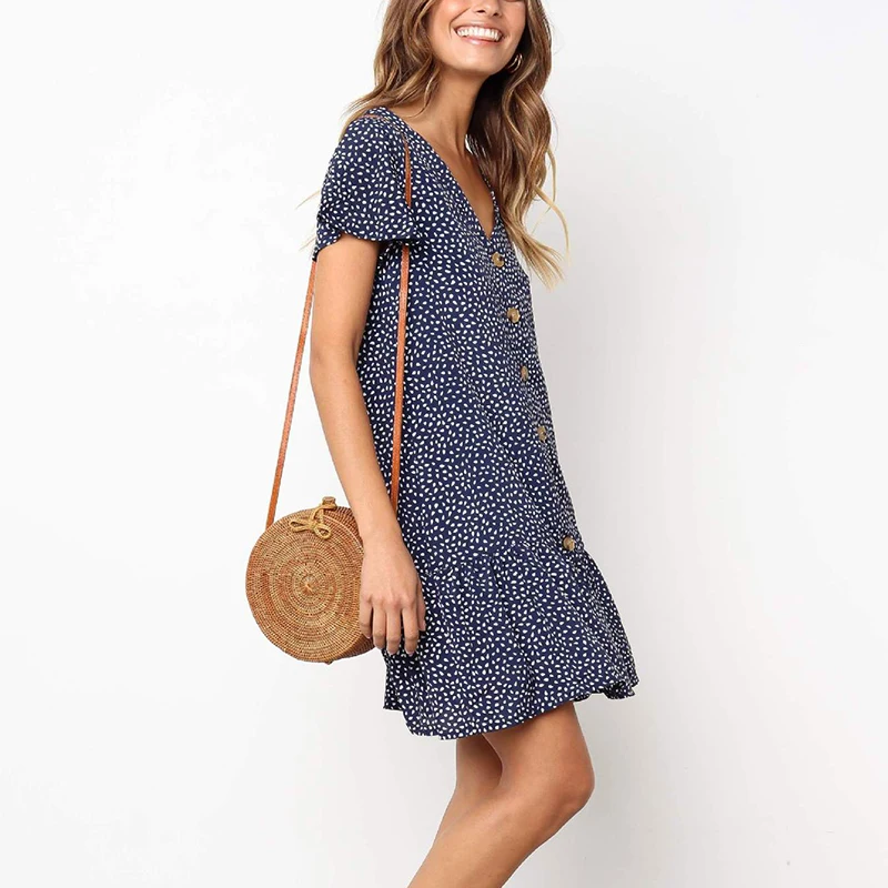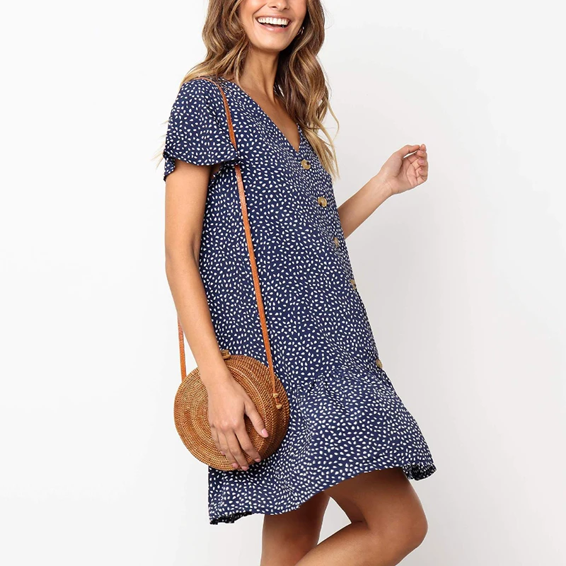 * Описание товара: женское летнее повседневное, v-образный вырез, короткий рукав, с принтом, мини-платье с цветочным рисунком, пляжный праздник