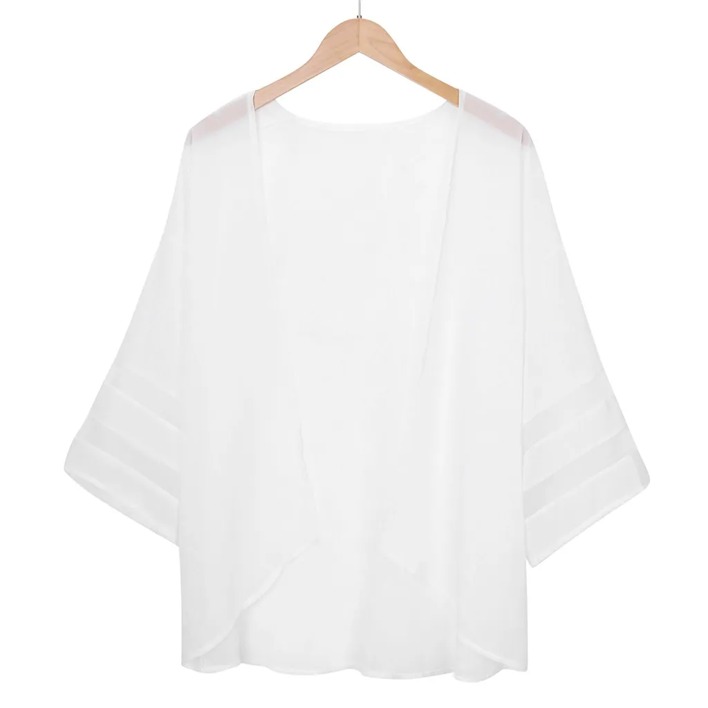 1.Material: 100% Polyester, sheer chiffon material, good stretch, soft fabric, this cardigan is essential to a complete wardrobe by many women and fashion observers, long-lasting, versatile, affordable