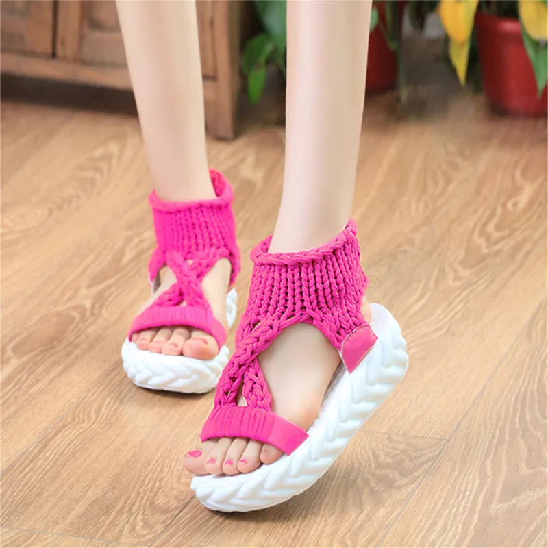 Женские босоножки на танкетке наивысшего качества для отдыха; Тканевая обувь на платформе; Нескользящая обувь для учащихся; Женские сандалии без застежки