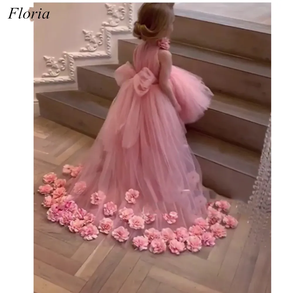 Лидер продаж, Розовые Платья с цветочным узором для девочек милое рождественское фатиновое платье с цветами для первого причастия Вечерние платья на свадьбу