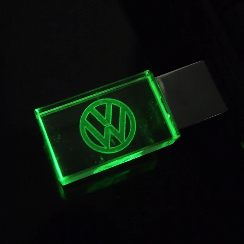 Модный хрустальный USB флеш-накопитель VW с логотипом автомобиля на заказ, со светодиодным флешкой 2,0, 4 ГБ, 8 ГБ, 16 ГБ, 32 ГБ, свадебные подарки, ручки, диски Cle UsbUS $8,31 /