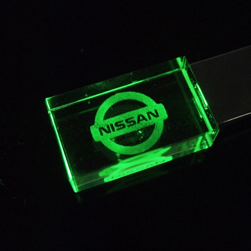 Модный кристалл логотип автомобиля NISSAN со светодиодной USB флэш-накопителем 64 ГБ 4 ГБ 16 ГБ 32 ГБ USB 2,0 карта памяти флешка на заказ ваш логотип подаркиUS $8,31 /