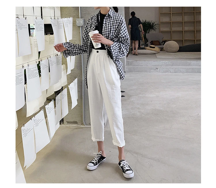 Широкие штаны 2018 мода лето Для женщин Высокая Талия плед свободные элегантные