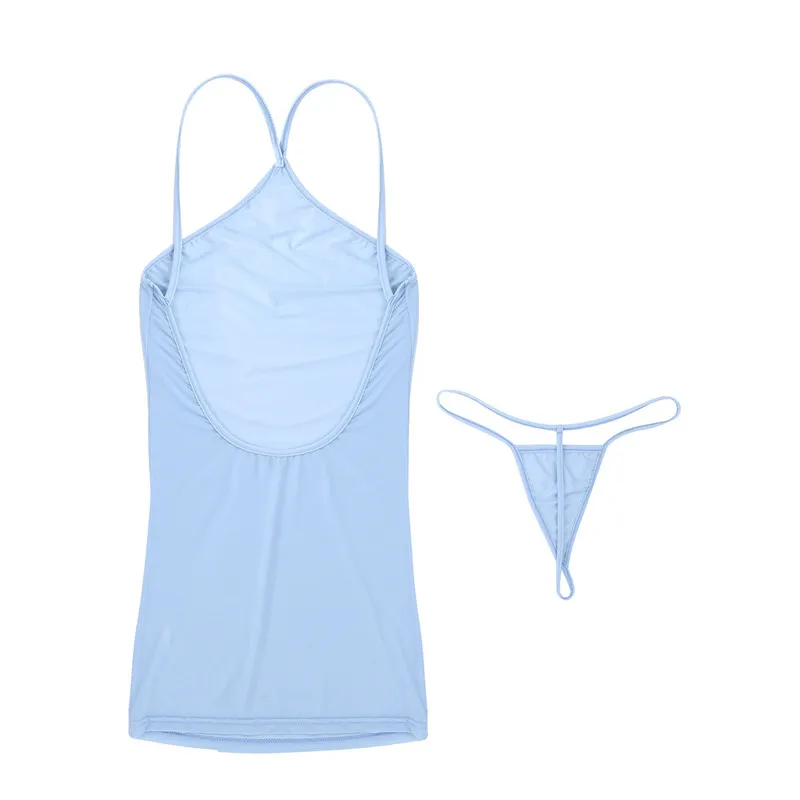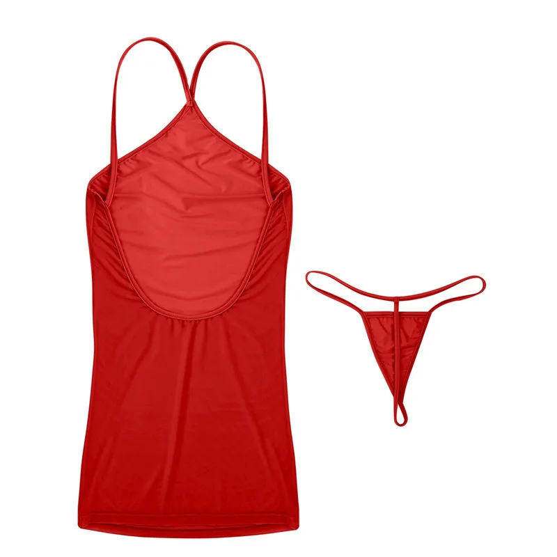 Сексуальное женское нижнее белье на тонких бретельках с открытой спиной, полупрозрачные мини-трусики, ночная рубашка, платье с стринги, трусы, одежда для ночного клуба