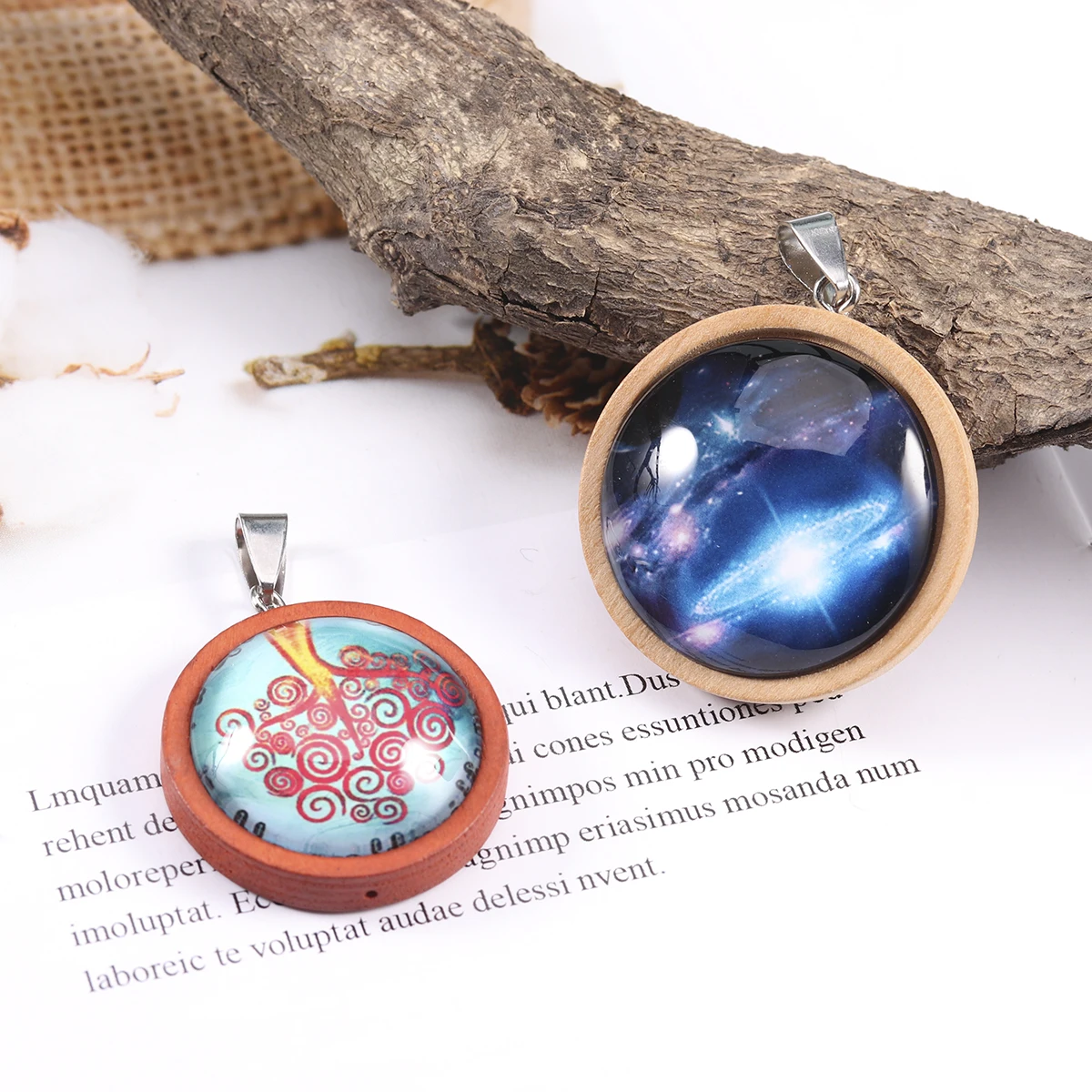 Lacoogh 8 штук; Цвет синий, бежевый, оранжевый, черный, подходят для 25/30 мм круглые деревянные кабошон базовая пустая деревянные оправы для кулонов "сделай сам" для изготовления ювелирных изделий, ожерелье