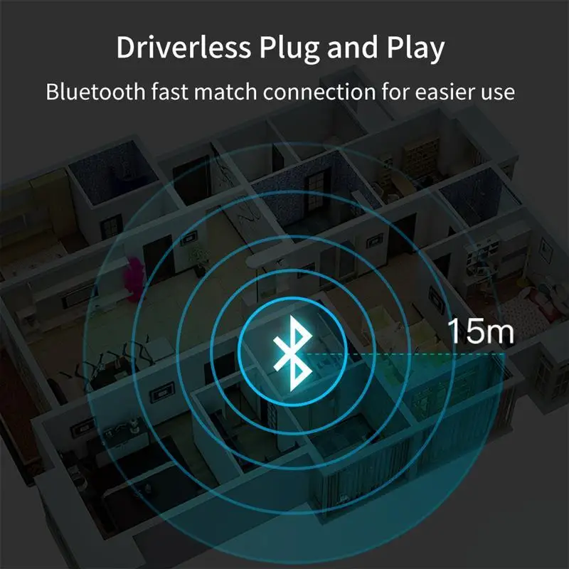 Беспроводной аудиоадаптер имеет встроенную улучшенную схему передачи сигнала, быстрое соединение, большое расстояние, стабильный и непрерывный звук, встроенный чип AEC echo и ANC, чистое качество звука, сделайте ваше использование более удобным и быстрым.