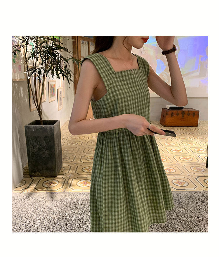 2 цвета, Летнее мини-платье 2019, элегантный дизайн, квадратный воротник, женское однобортное платье без рукавов в клетку, женское платье на бретелях
