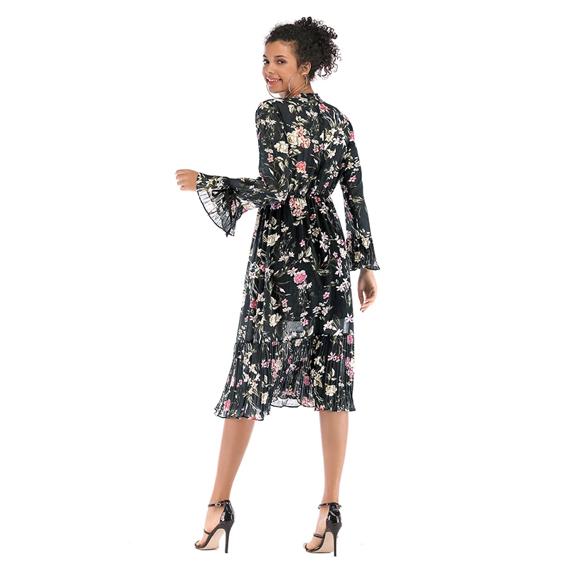 Это шифоновое платье с принтом, простое модное, элегантное и удобное. Ткань-шифон.
