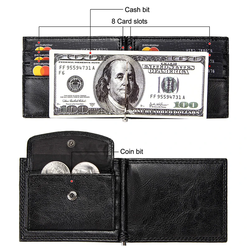 Тонкий чехол для визиток, кошелек, мужской зажим для денег, винтажная кожа, двойные короткие кошельки для мужчин, много отделений для карт, искусственная кожа, роскошный