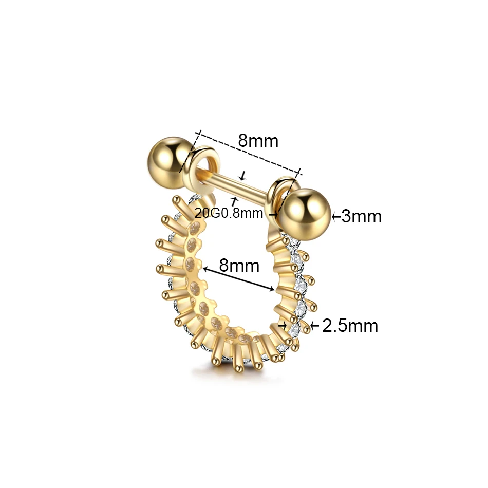 4. Design:CZ Gem Nose Septum Rings Piercing Ear Cartilage Tragus Helix Piercings