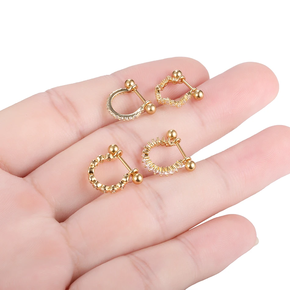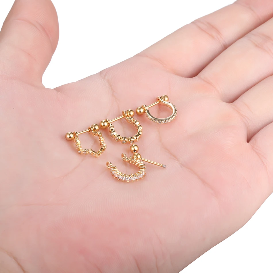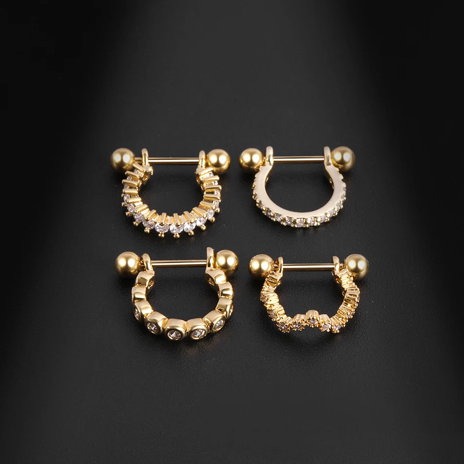 1Pc Copper Gold Color Nose Rings Earrings Piercings Gem Ear Studs Piercing Nariz Nipple Piercings Helix Barbell Body Jewelry
