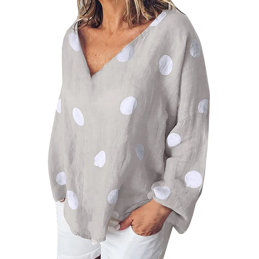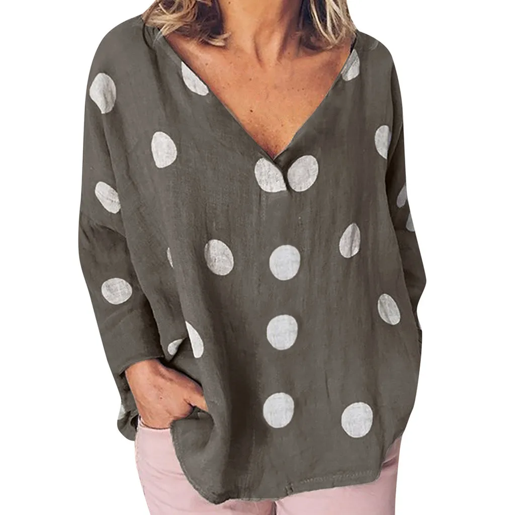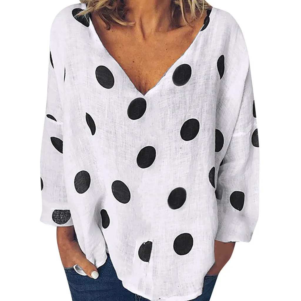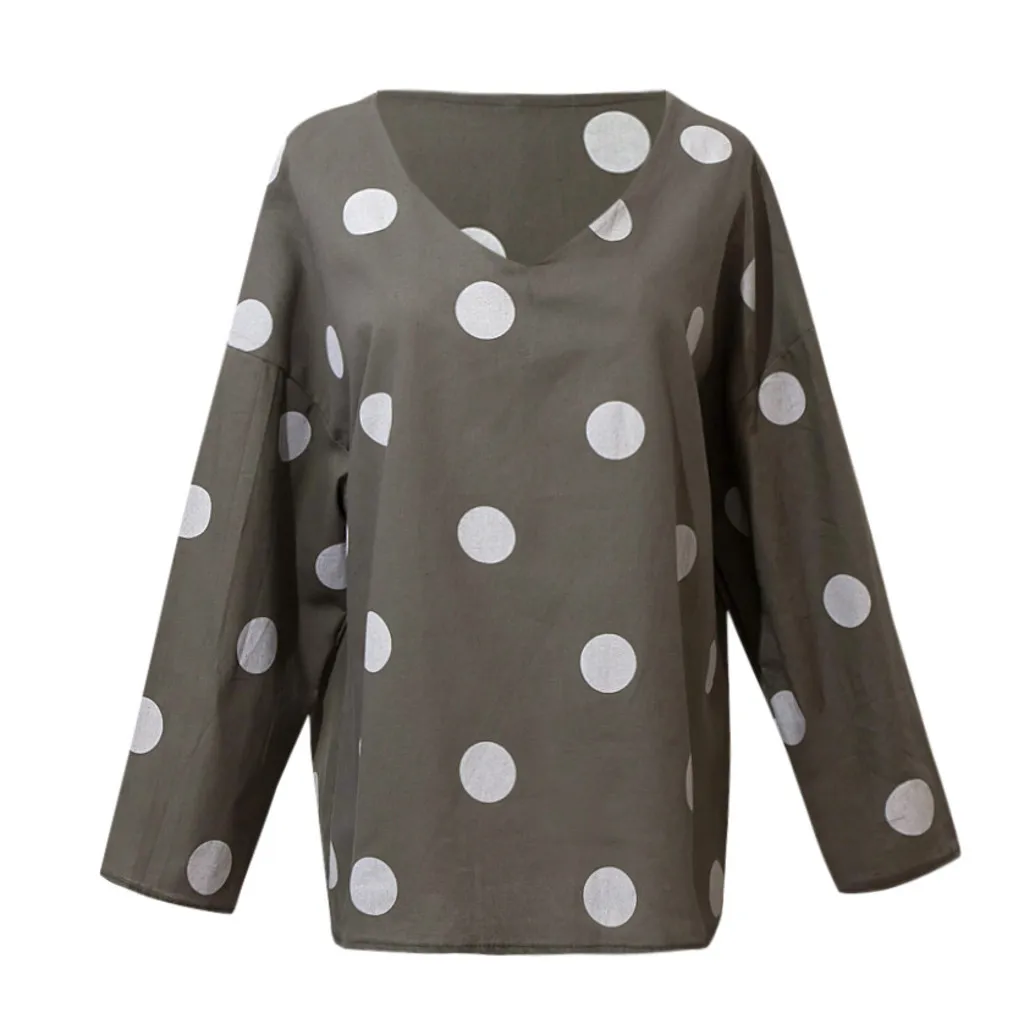 Женская Повседневная Блузка в горошек, свободная рубашка с v-образным вырезом и длинным рукавом