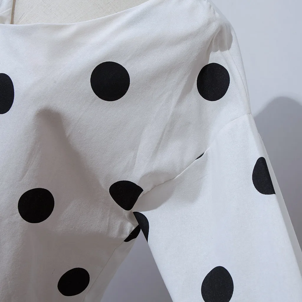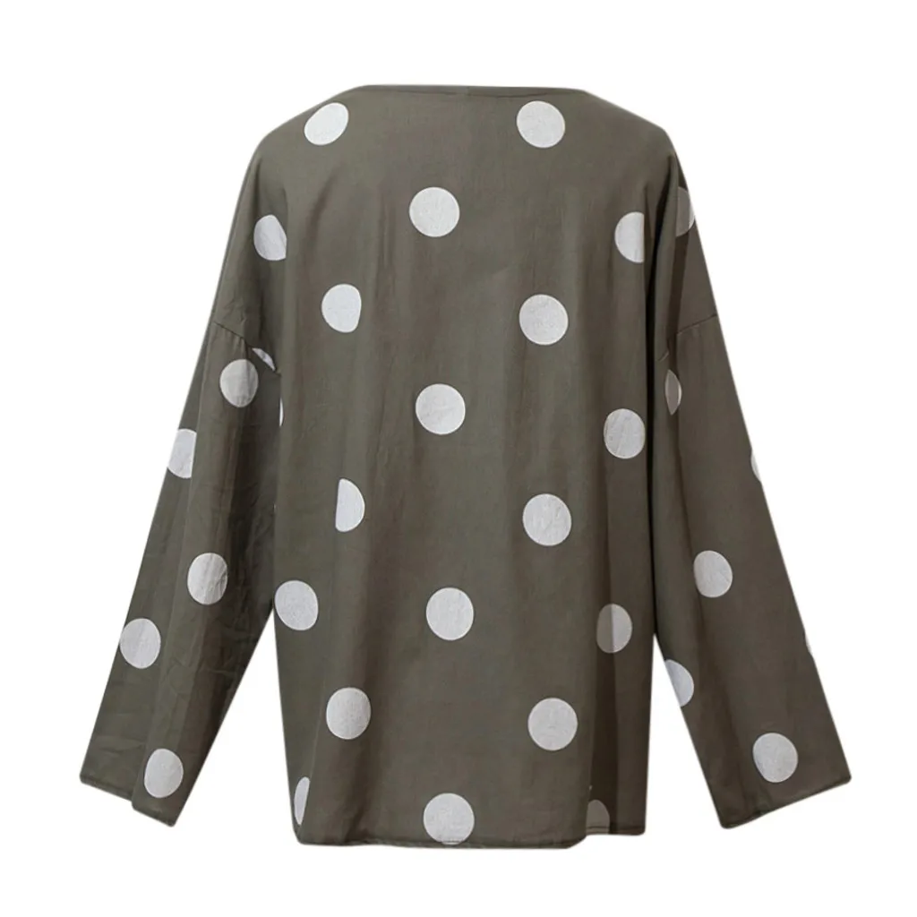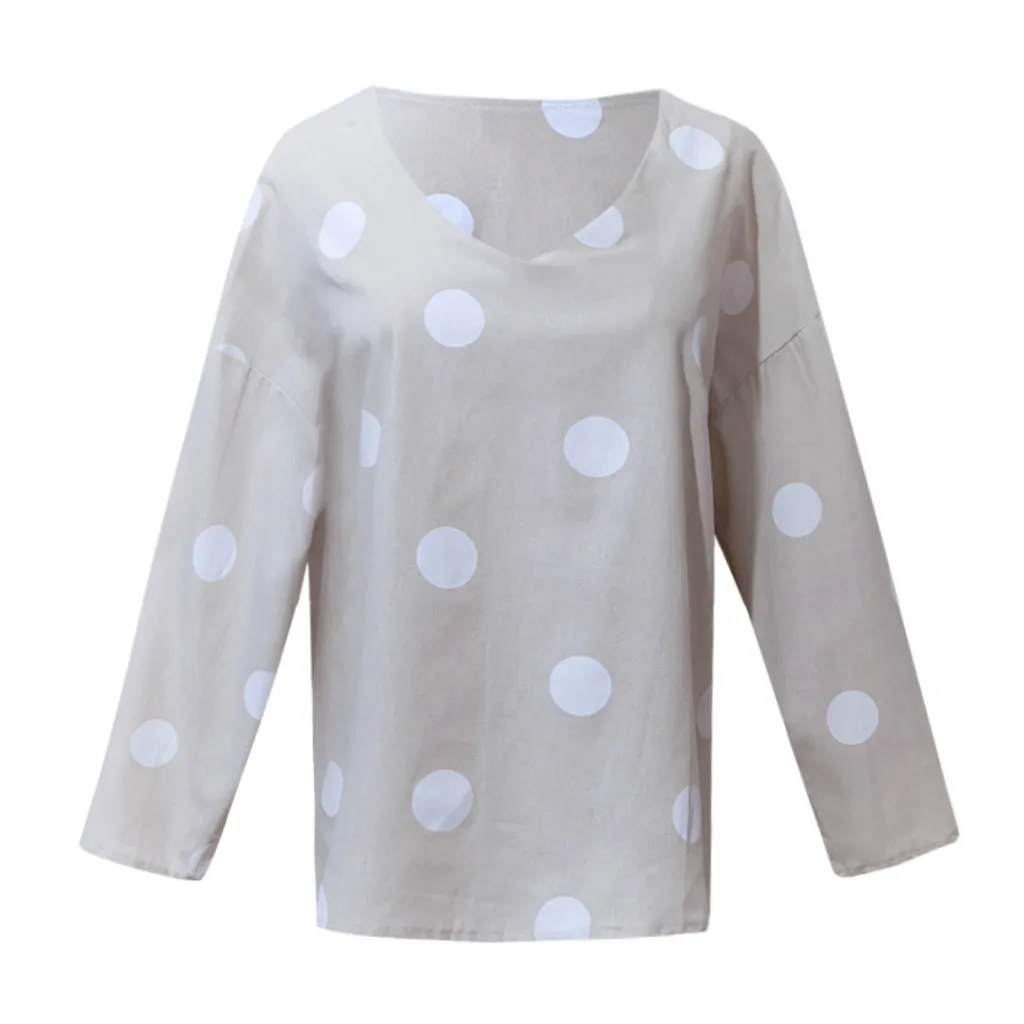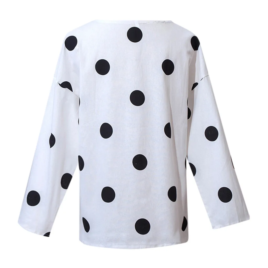 Женская Повседневная Блузка в горошек, свободная рубашка с v-образным вырезом и длинным рукавом