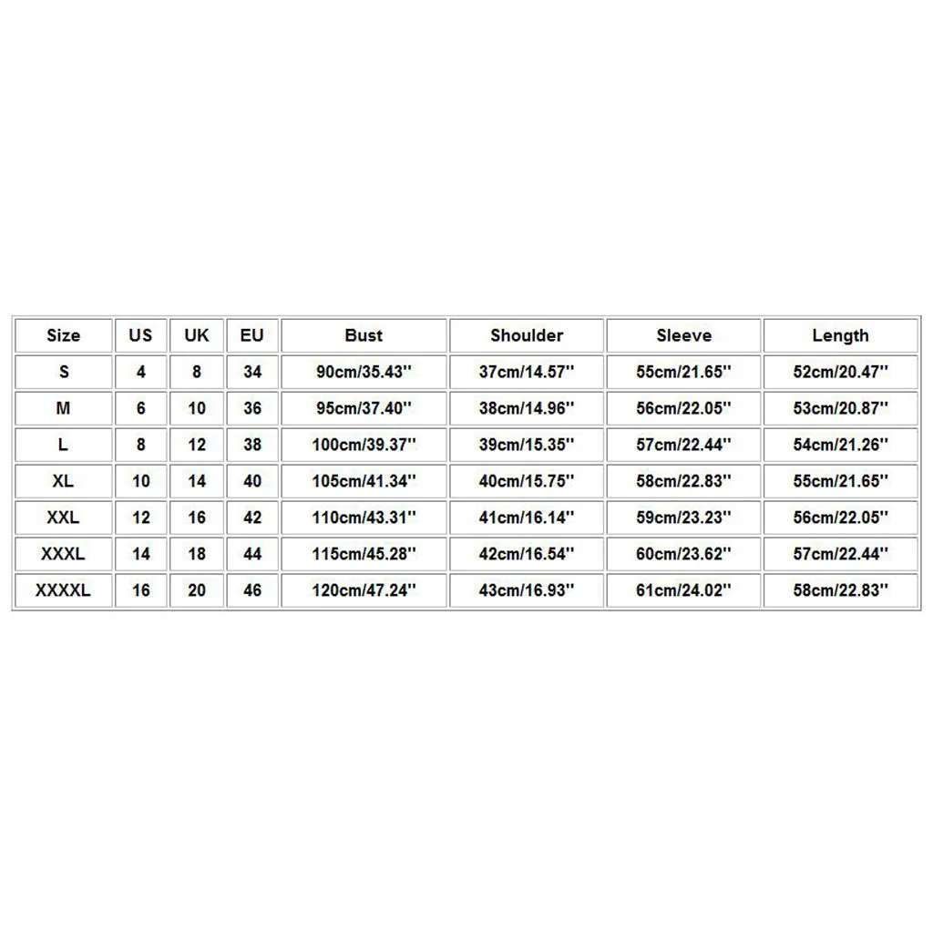 | Размер | США | Великобритания | ЕС | Бюст | Плечо | Рукав | Длина |
