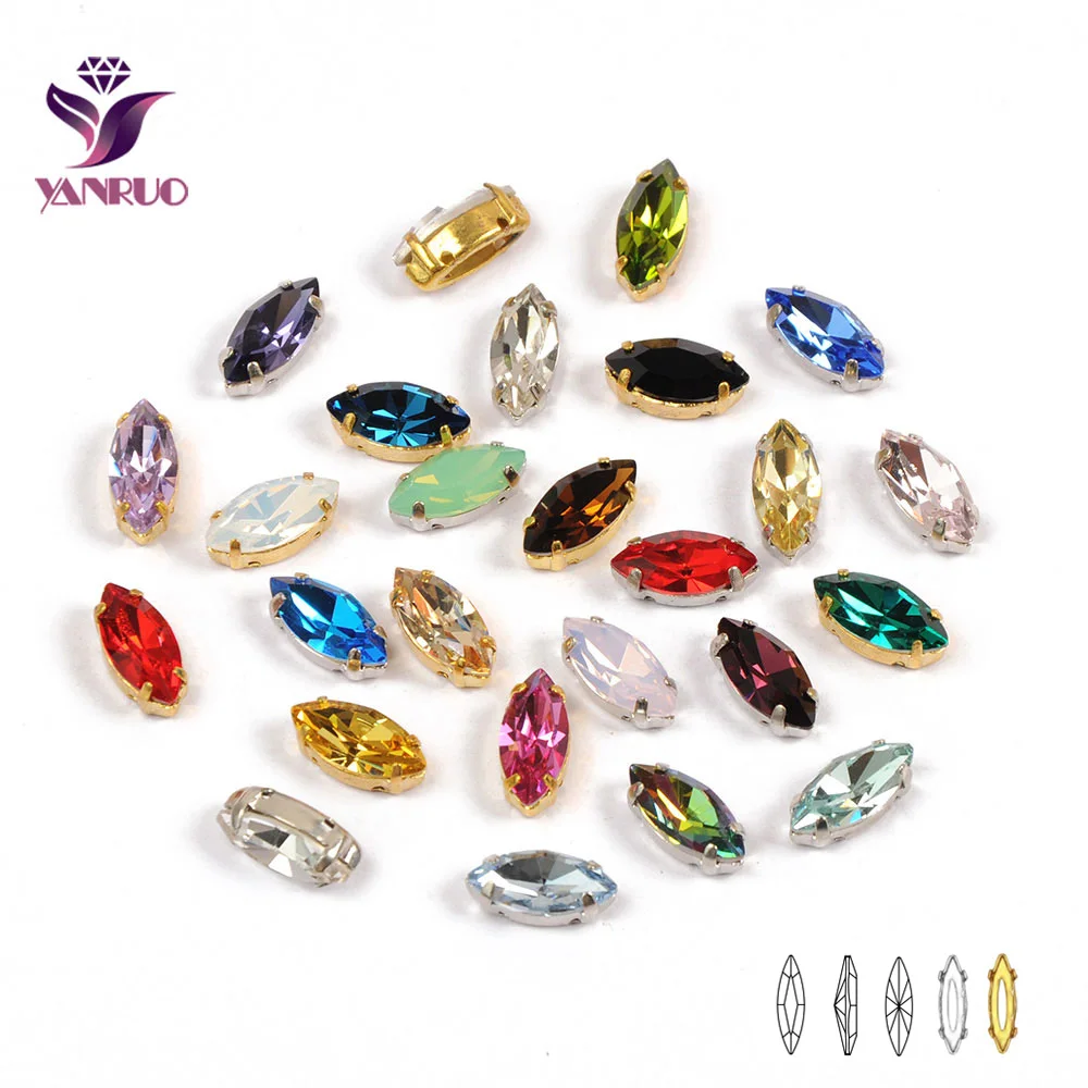 YANRUO 4200, разноцветные бусины Navette, причудливые камни, серебряная закрепка-коготь, стекло для рукоделия, ювелирных изделий, одежды, швейных изделий