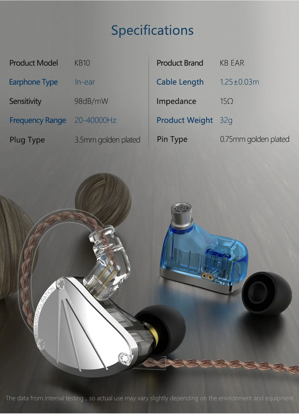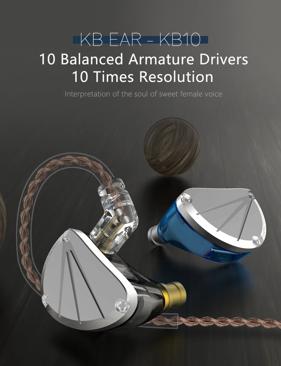 1.Название продукта: KB Ear KB10IN-ear наушники 2. Бренд: KB EAR 3.Модель:KB10 4.Тип наушников:In-ear/с наушным креплением 5.Сопротивление: 15Ω 6.Чувствительность наушников: 98ДБ/мВт 7.Частотный диапазон: 20-40000 Гц 8.Интерфейс: 3,5 мм позолоченный 9.Тип вилки: изгиб 10.Кабель Длина: 1,2 м ± 3 см 11.Цвет:Черный/синий 12.Есть ли кабель: Да 13.Интерфейс наушников: 0,75 ммИнтерфейс QDC 14.С микрофоном:Опционально 15. Можно ли заменить кабель: Да 16. Материал кабеля: 4 ядра посеребренные 17.Блок драйвера:5BA каждая сторона, одна 22955 низкочастотная BA, Два 29689 средней прочности BA, Два 22955 высокой частоты BAСмотрите так же другие товары: