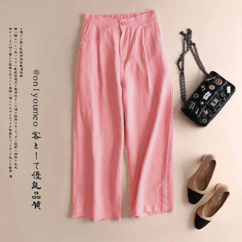 #0654 размера плюс штаны 4XL повседневные платья из хлопка и льна широкие брюки для