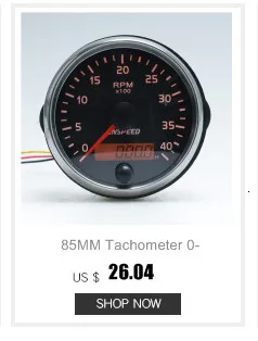 Описание продукта: Размеры: 5 дюймов Применимые модели: 12 В бензиновые транспортные средства (4.6.8 цилиндр) Показания тахометра: 0-11000 об/мин Функция предупреждения о тахометре: можно установить Температура воды: 40-120 градусов Цельсия Температура масла: 50-150 градусов Цельсия Чтение масляного пресса: 0-7 бар Примечание: 1. Светильник фактического манометр может быть s светильник ly отличается от того, что показано на фото, поэтому мы думаем, что вы останетесь довольны отнестись к этому с пониманием! 2. Настоятельно рекомендуется Профессиональная установка! 1*4 в 1 Gauge 1 * Датчик температуры масла (спецификация резьбы: 1/8 NPT) 1 * Датчик температуры воды (спецификация резьбы: 1/8 NPT) 1 * Датчик давления масла (спецификация резьбы: 1/8 NPT) 1 * Руководство пользователя (на английском языке)