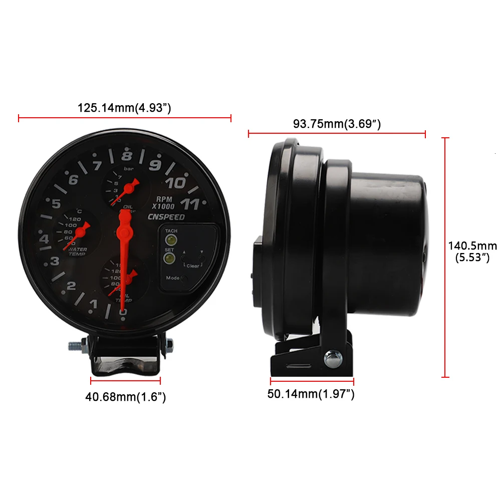 5 "4 в 1 Тахометр для автомобиля, измеритель оборотов в минуту, датчик температуры воды для гоночного автомобиля, датчик температуры масла, датчик давления масла, светильник переключения